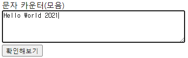 - 사용자가 <textarea>에 문자열을 입력하여 확인해보기를 누르면 문자열 중 모음의 개수를 표시해준다.