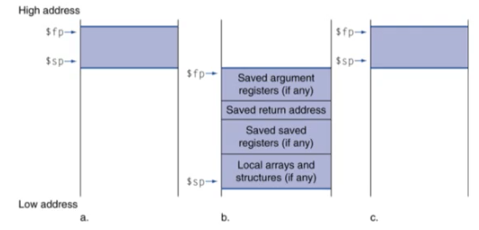 - -> caller, callee 가 존재하기 때문에 Non-leaf procedure 가 더 복잡하다
