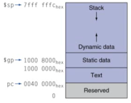 - $gp : global pointer for static data (전역 변수 저장 공간을 가리키는 변수 저장) -- reg 28